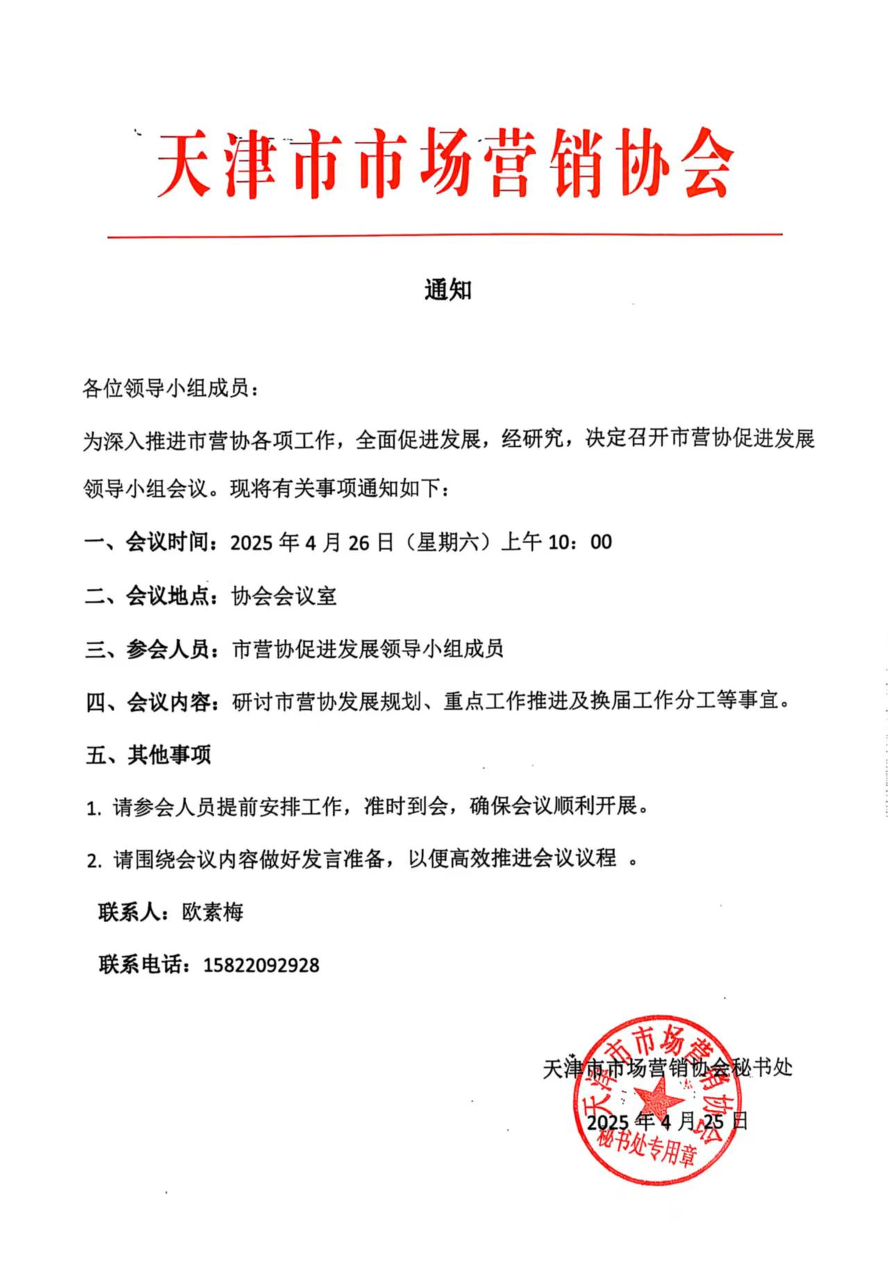 市营协促进发展领导小组会议的通知